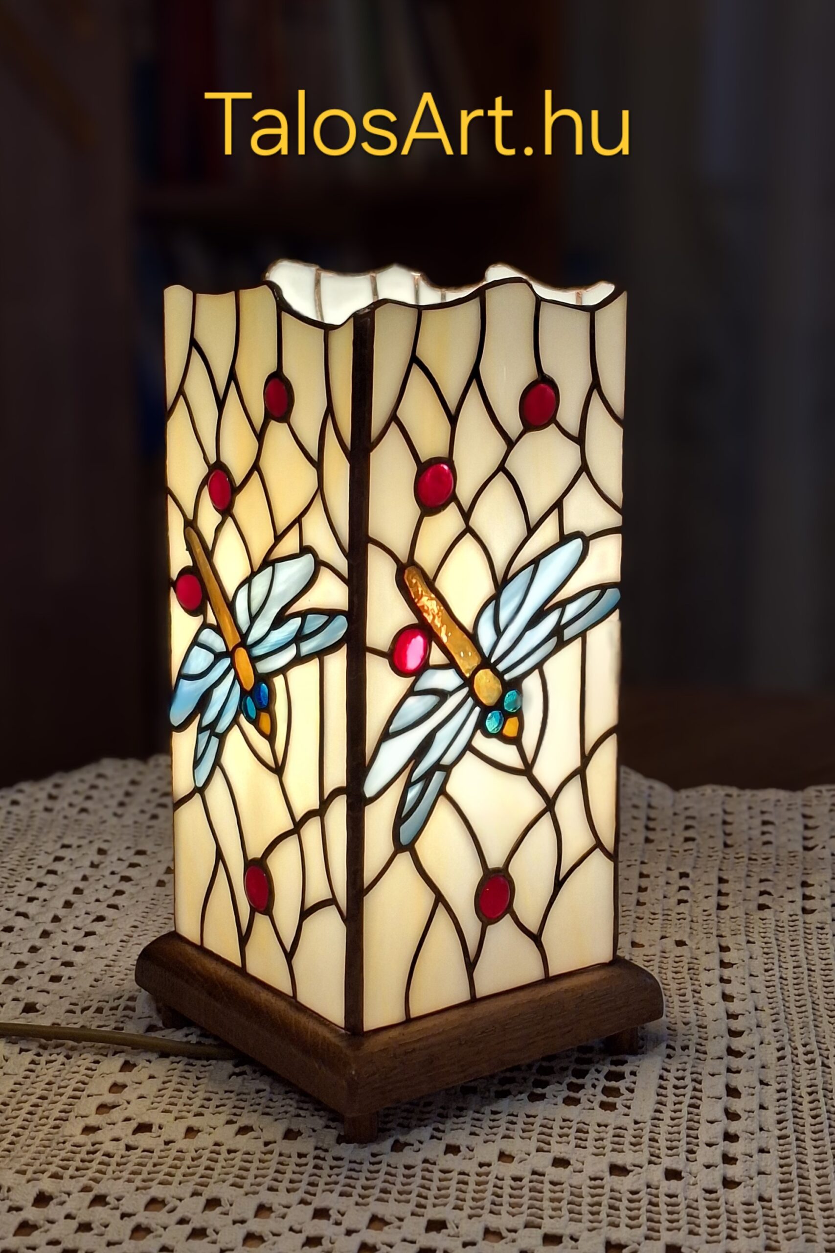 Tiffany lámpa szitakötő motívummal, mérete: 12×24 cm